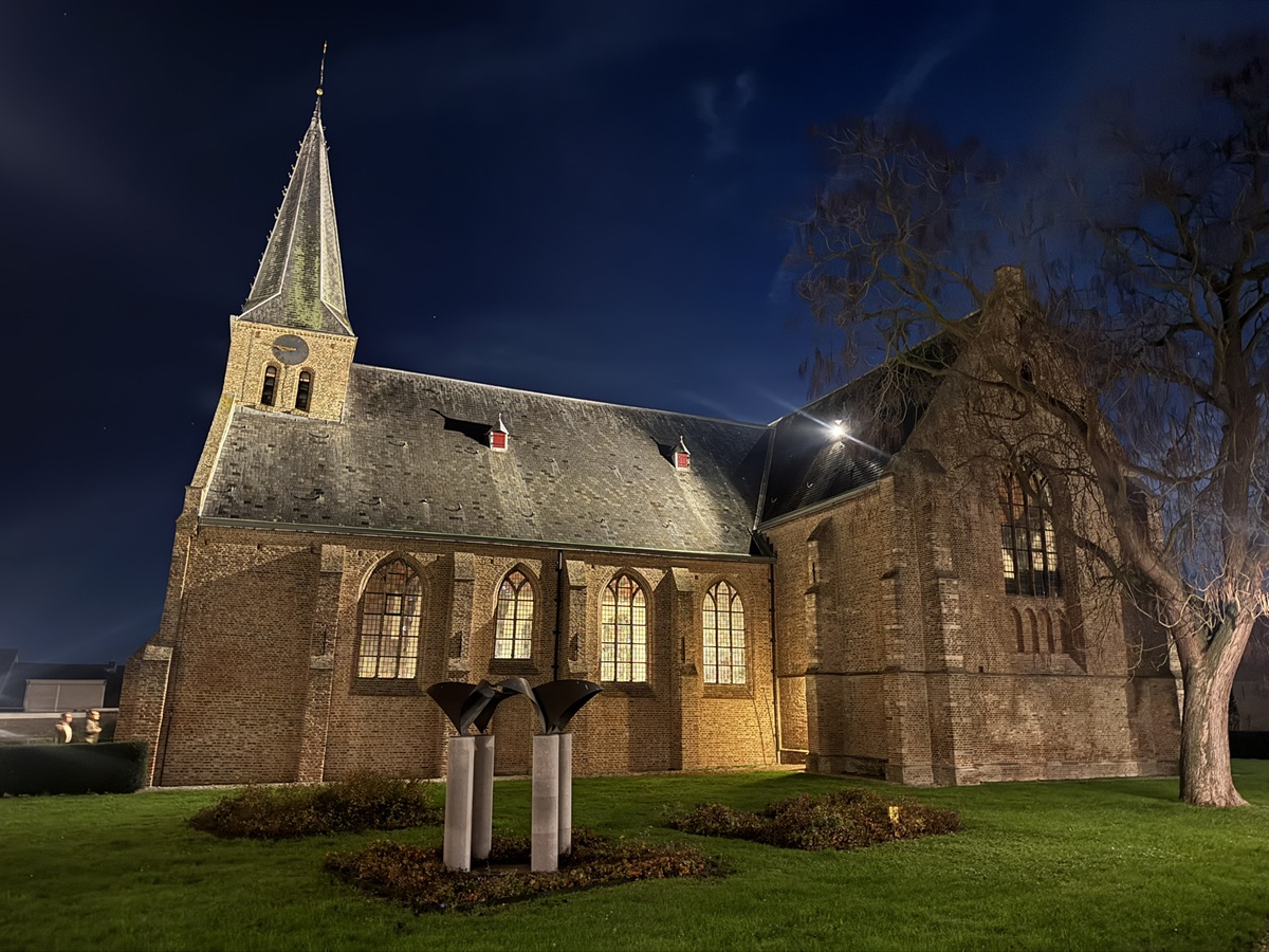 De verouderde armaturen zijn vervangen door moderne LED-verlichting. Zo blijft de kerk ook in de avonduren prachtig uitgelicht, met minder energieverbruik. Er zijn in totaal vier armaturen vernieuwd: twee op palen bij de toren en twee op het dak.
