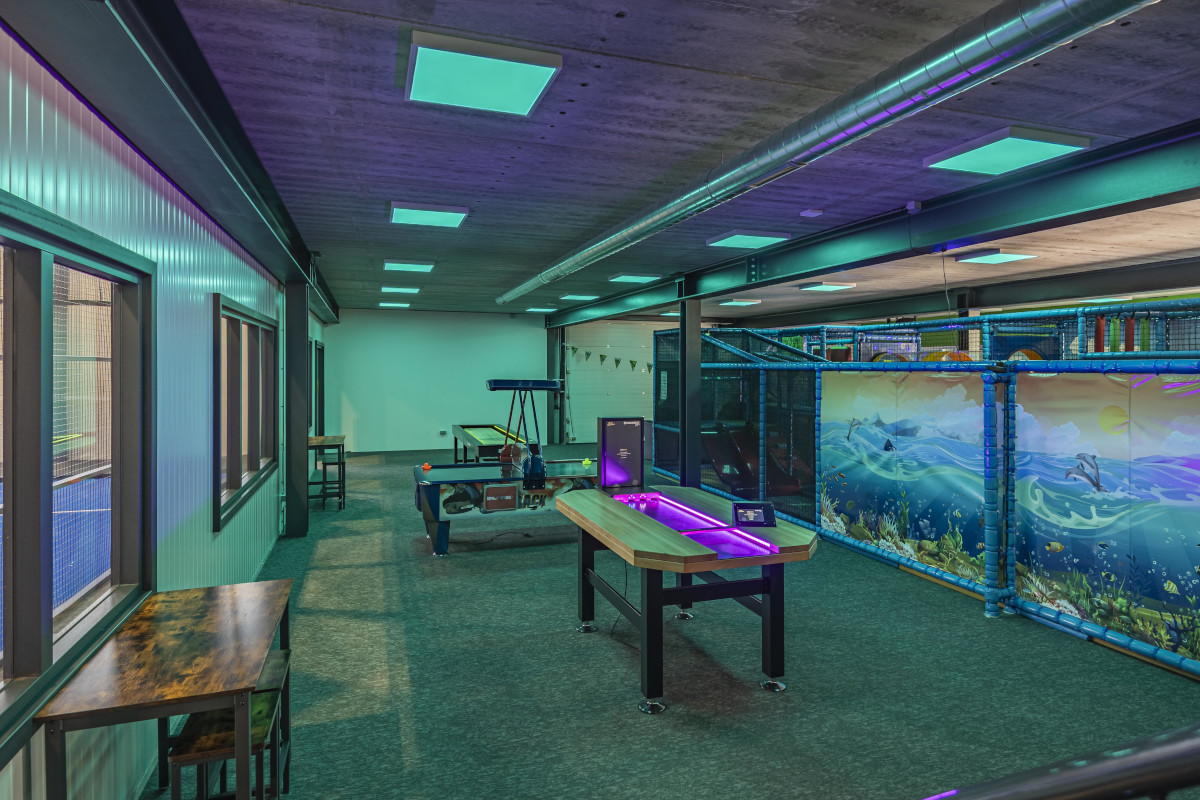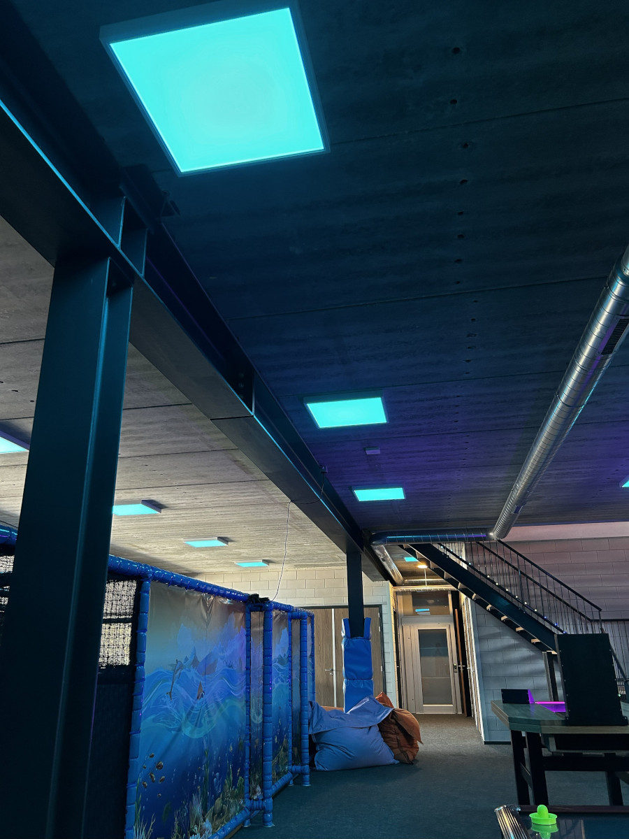 Er is extra aandacht besteed aan het lichtontwerp, de sfeer in de speelhal is eenvoudig aan te passen – van helder wit licht tot een dynamisch kleurenspektakel. Op de padelbanen zorgen zorgvuldig gekozen armaturen voor optimaal zicht, snelle reacties en een veilig spel.